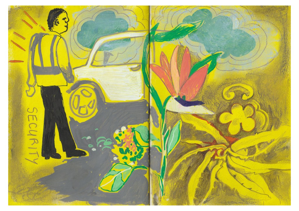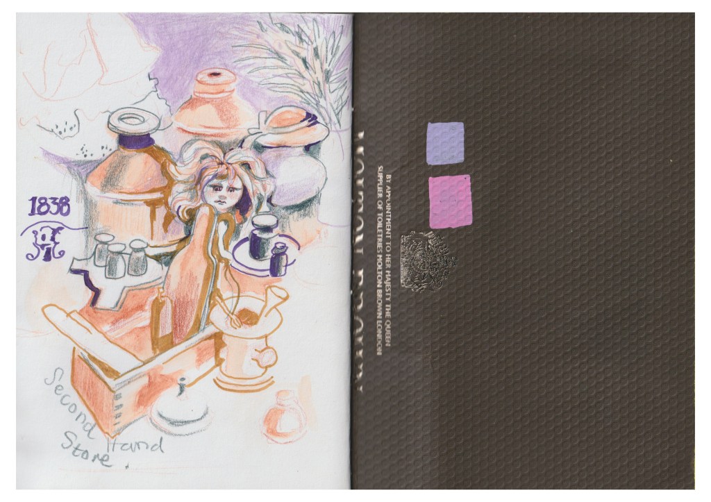 As I walked to my car, I took photos of objects from an antique stall, more people drinking coffee, plants and the car park area and filled up the rest of the sketchbook as seen in Figures 9, 10 and 11.