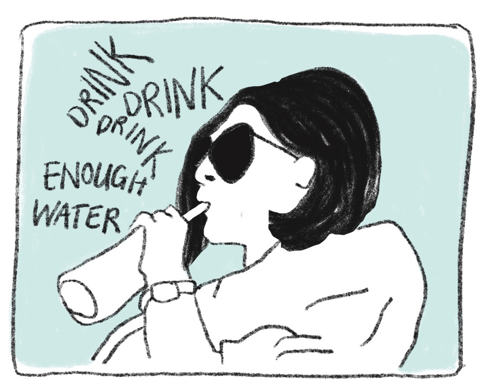 On the left of Figure 7, a woman with sunglasses is drinking water from her water bottle. Her thoughts are: “Luke’s maths are becoming too difficult for me to help him.” “Drink, drink, drink enough water.” “I should remember not to drink coffee after 4 p.m. again.” “That late coffee yesterday kept me up all night.” “Five minutes before I have to leave to fetch the kids from school.” These thoughts tell us that she is a mother waiting to fetch her kids. She needs to drink more water and cut down on coffee after 4 p.m. Her kids are getting older, and she can’t help them with maths anymore.