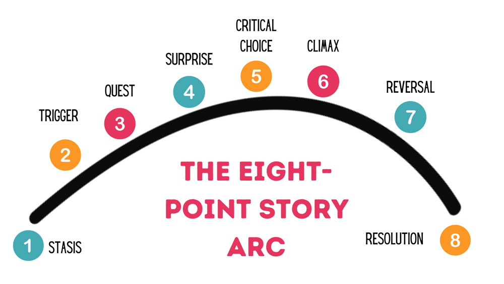 This same plot structure can be used in a different form, such as a zine, comic strip, or sequence of drawings without words. It can be used with any genre or content. It will be interesting to write or draw a story based on Nigel Watt’s Eight Point Arc structure.