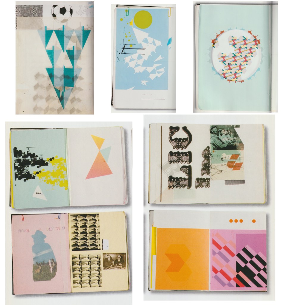 “I think keeping a sketchbook is a good way of teaching yourself how to edit well – you begin to fine-tune your ability to know exactly what to keep and what to discard. You realise that what you leave out is as important as what you put in. My sketchbooks are configurations of shapes, colours and spaces. I collect lots of material from old books in libraries and charity shops and then translate it all through a series of pages in the book to come up with completely new ways of ‘engineering’ images.” (Brereton, 2009)