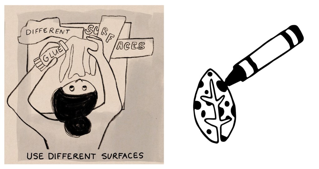 I could explore more with different surfaces. Printing my digital work on ‘waste’ or drawing on unconventional surfaces when exploring a brief such as kitchen towel when doing a food illustration.