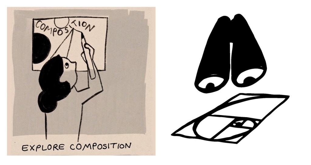 Exploring composition through thumbnails by considering different viewpoints, angles and sequencing is an important step in achieving the best possible illustration at the end.