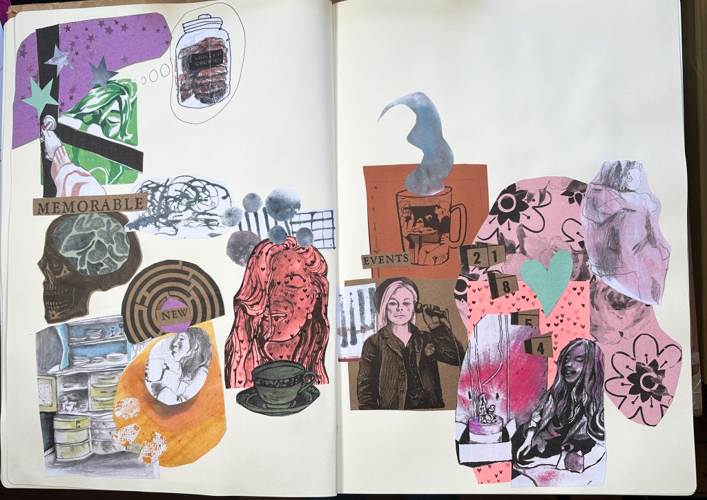 Below I will show the raw collage pages I have created in my A3 sketchbook.
