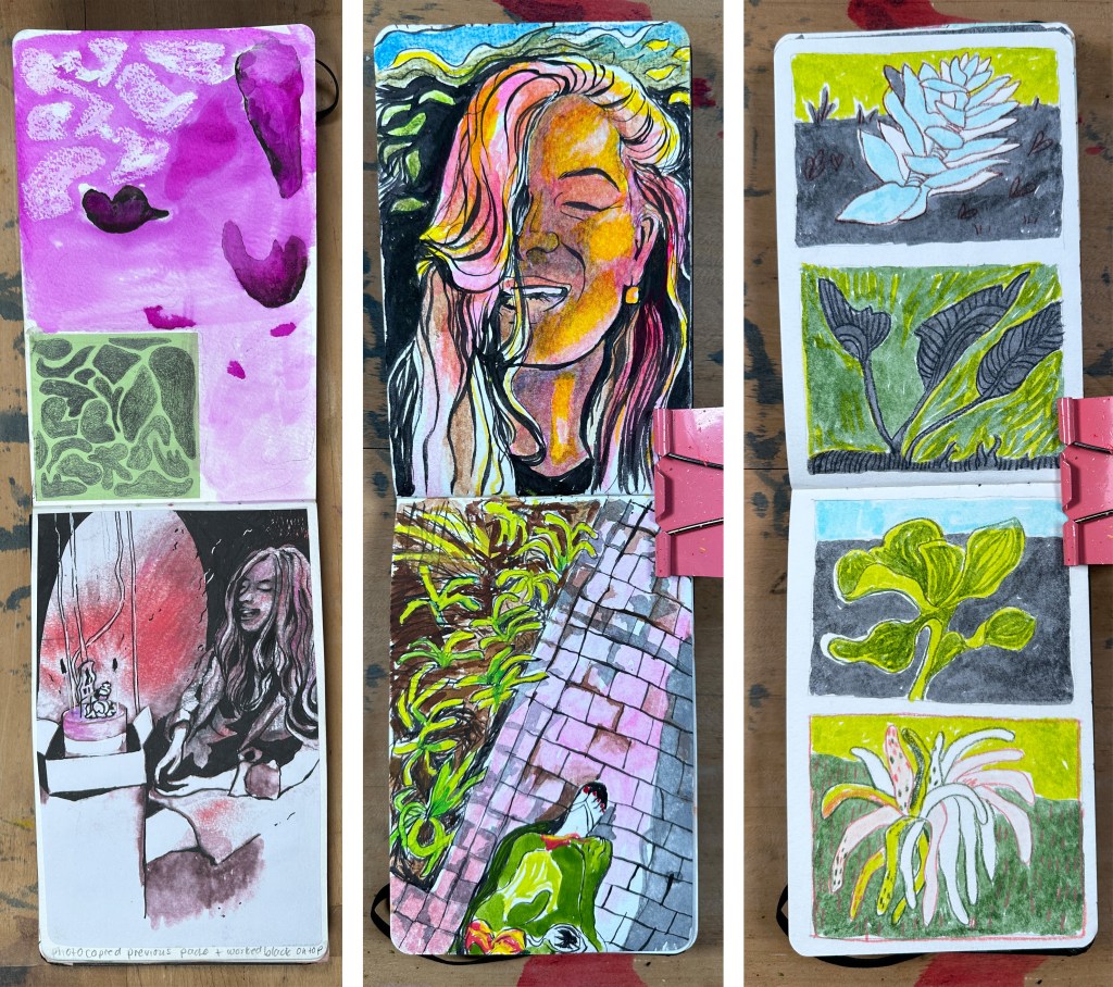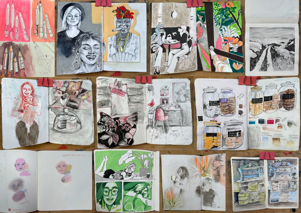 Lay the action plan and images somewhere that you can look at them together. Arrange your composite drawing to create connections between them. You could end up with clusters of images that are important to you for different reasons and drawings that connect from one sketchbook to another. There will be no wrong or right collections. Just collections that mean something to you.